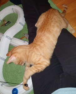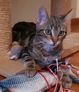 Also ihr seht, so langsam vertrauen wir dem Ganzen hier, vor allem mit Spielangel und anderem Spielzeug kann man uns ködern 😉. Wir werden euch also weiter berichten und euch auf dem Laufenden halten.