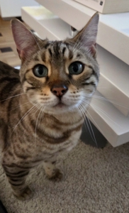 Wir haben Mia als die unkomplizierteste aller Pflegekatzen, die wir je hatten, wahrgenommen und haben immer gesagt, sie hat etwas von einem Hund im Verhalten. Dies zeigt sich nun auch in ihrem forever home. Kommt Frauchen nach Hause und ruft nach ihr, sprintet sie sofort nach Hause. Bei meinem Besuch wurde ich zudem auch Zeugin von Befehlen, welche Mia für Hühnersnacks befolgt hat 😃. Das war sehr eindrücklich!
