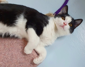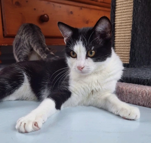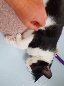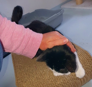 Allgemein hat er sich hier sehr gut eingelebt. Wenn man denkt, dass er bis im September kein Kontakt zu Menschen hatte und ausschliesslich draussen gelebt hat, ist er extrem anhänglich und lieb 😻.Als unser Pflegepersonal kürzlich genug vom Besen hatte (bis die Katzen angekommen sind, wird jeweils der Staubsauger vermieden) und den Staubsauger genommen hat, war ihm dieser zuerst nicht so geheuer. Ich habe es auch nicht sehr gerne, weiss aber wo ich in Sicherheit bin 😉. Zanelo machte aber, was keine Katze hier je gemacht hat: Er ging zu Nathalie, die am Saugen war, und wollte in ihre Arme klettern… 😂. Und so kam es, dass gesaugt wurde mit einer zitternden Katze in den Armen. Praktisch war es nicht wirklich, aber was man hier nicht alles tut für unser Wohlbefinden! Inzwischen weiss auch er, dass es nicht gefährlich ist.
