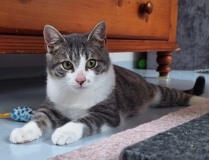 Wir sind beide eher ruhige Katzen. Wir spielen zwar, aber wie auf den Videos zu sehen, eher ruhig. Nathalie vermutet, dass wir unsere Spinelli-Phase in der Nacht ausleben 🤣, weil am Morgen nicht mehr alles da ist, wo es abends war. Aber Achtung, richtig verstehen: Vernichten tun wir nichts 😁.
