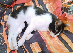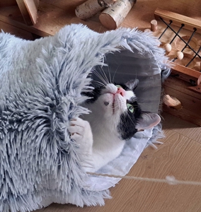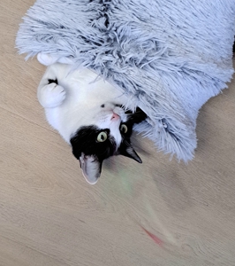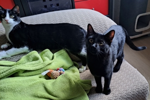 Ich halte mich da lieber etwas zurück und beobachte alles gechillt in den Armen meiner Pflegemami. Ja genau, ich bin eher der Schmusekater und geniesse die Nähe der Menschen extrem 😍. Natürlich gesellt sich auch Bean nach dem Rumalbern zu uns, aber den besten Liegeplatz nehme ich klar in Beschlag.