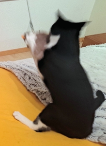 Wir haben die ganzen trüben Tage viel Unfug angestellt und alles auf den Kopf gestellt. Neue Spielsachen geklaut, rumgewirbelt und demoliert und es hat soooo viel Spass gemacht 😂. Der zwitschernde und mit den Flügel flatternde Vogel hat es uns mega angetan. Bean musste natürlich gleich übertreiben und hat diesen nach einigen Minuten schon vom Gummiseil gezogen und ihn in alle Zimmer mit lautem Knurren rumgetragen. Auch mit der ultra langen Spielangel ging er ab wie ein Zäpfchen und wollte gar nicht mehr aufhören, dem kleinen Flatterteil am Ende der Angel nachzujagen, Luftsprünge und Saltos machen. Er ist der absolute Spiel-Clown 🤣 und auch Spielsachenkiller.