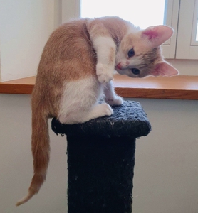 Vorab was zu unseren Namen. Da wir alle mehr oder weniger rot sind, bekamen wir den passenden Gruppennamen Pumpkins. Unsere eigentlichen Namen würden wir uns, wie schon öfters, gerne von euch geben lassen. Da wir aber noch zu jung sind, um offiziell vorgestellt zu werden – und es wegen des Pilzes auch etwas dauern kann – hat uns unsere Pflegefamilie temporäre Namen gegeben. Sie können uns ja nicht über Wochen “Katzenmädchen 1… etc.” rufen 😂. Wundert euch also nicht, wenn ihr diese Namen seht: Wir sind zwei Mädels namens Canelle und Zucca und zwei Jungs namens Findus und Garfield.