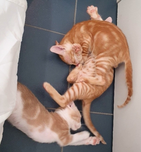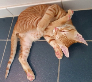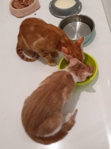 Inzwischen funktioniert alles viel besser, wir sind selbständig, trinken noch Milch, aber aus der Schale. Ich war der Erste, der die Schoppenflasche nur noch zum Zahnen benutzte… was Nathalie nicht so toll fand 😉. Wir essen Katzenfutter, manchmal Fleisch, manchmal Lachs, uns geht es damit prima. Unsere Verdauung scheint sich stabilisiert zu haben 🤗.