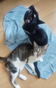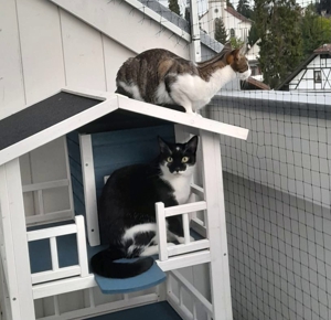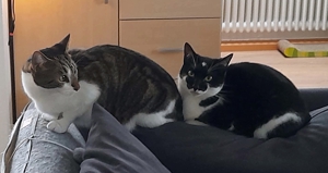 Ein Highlight ist für beide der gesicherte Balkon. Dort gibt es täglich genug zu beobachten: Vögel, Menschen, wechselnde Geräusche. Und wenn sich ein Käfer auf den Balkon verirrt, ist das sofort eine spannende Aufgabe 😅. Bei Regen oder kühleren Temperaturen bleiben sie dann aber doch lieber im Warmen. Kleine Brüder-Streitigkeiten kommen natürlich vor, verlaufen aber schnell wieder im Sande 😺. Insgesamt wirken die beiden harmonisch, neugierig und gut ausgelastet. Maria sorgt für viel Abwechslung, Spiel und Aufmerksamkeit, was man den beiden auch anmerkt.