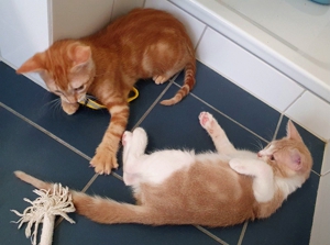 Es kann nur noch besser werden. Zum Glück geht es uns sonst sehr gut, wir gedeihen gut, sind gute Esser, sind stubenrein, spielen viel und gerne, und gemäss unsere Pflegefamilie sind wir ganz liebe Kätzchen, absolute Schmuser 😻.