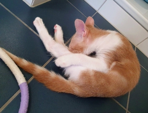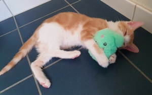 Es kann nur noch besser werden. Zum Glück geht es uns sonst sehr gut, wir gedeihen gut, sind gute Esser, sind stubenrein, spielen viel und gerne, und gemäss unsere Pflegefamilie sind wir ganz liebe Kätzchen, absolute Schmuser 😻.