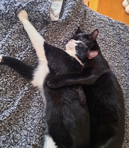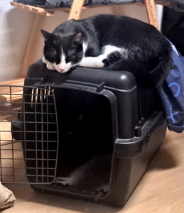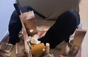 Nachtrag, 22.11.2025: Zwei brave Jungs steigen problemlos in ihre Umzugsbox 😃: