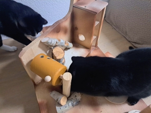 Unser Pflegemami gibt uns auch noch viele Spielsachen, Kratzbäume und Futter mit, damit es uns an nichts fehlt und bringt uns persönlich hin 🥰. Lest einfach die Tagebücher weiter, dann seht ihr, wie es uns geht und wie wir die neue Pflegestelle in Beschlag nehmen und die Dosenöffner um die Pfote wickeln 😻.