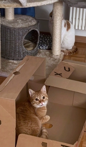Unsere Pflegeeltern, der Katzenonkel und andere Freunde von unsern Angestellten wollen uns alle sehen. Wenn die Besucher sich ruhig verhalten, zeigen wir uns auch. Manchmal zeigt Mato etwas Akrobatik 😂.