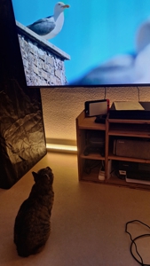 Der Kittensitter war völlig aus dem Häuschen, weil ich weder fauchte noch in dramatischer Katzenpanik durch die Wohnung stürmte. Stattdessen habe ich ganz kultiviert meine Schnurrhaare geschüttelt und ein Gespräch begonnen. So macht man das! Die Nachbarskatze hingegen war überrascht, ja fast beleidigt, dass aus der Wohnung plötzlich zwei riesige Katzenaugen auf sie starrten 😮. Trotzdem blieb sie einfach sitzen und starrte zurück, so als wären wir mitten in einem Westernduell. Der Kittensitter stand zwischen uns wie ein nervöser Schiedsrichter, aber ich versichere: Alles blieb friedlich. Fürs Erste.