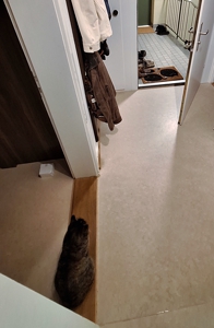 Alles begann damit, dass sich die Nachbarskatze heimlich ins Treppenhaus geschlichen hat. Kaum wollte der Kittensitter die Wohnung verlassen, da sass sie plötzlich vor der Tür und ich natürlich gleich daneben, weil ich meine Kittensitter immer ordentlich verabschiede. Höflichkeit ist wichtig 😉.