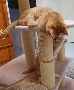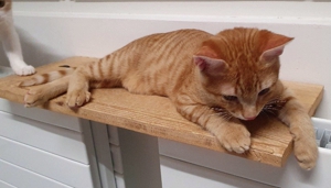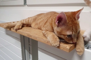 Wir mussten ein paar Sachen lernen, zum Beispiel, dass wir nicht raus dürfen aus unserem Zimmer… was uns sehr schwer fällt 😅. Wir schlafen extra direkt vor der Türe, damit wir es raus schaffen, wenn jemanden kommt 😉. Nur Karenji ist brav, wartet schön auf dem Fenstersims und beobachtet, wie wir anderen so rausflitzen und Nathalie uns hinterher springt. Am interessiertesten ist Möhrchen, die haut regelrecht direkt ab, sobald die Türe auf geht. Aber Nathalie hat alles im Griff und packt uns ganz schnell wieder zusammen und zack, zurück ins Zimmer 😕. Auch muss Karenji lernen, dass sie im Lavabo nichts zu suchen hat… das will sie nicht verstehen und springt immer wieder rauf. Sonst sind wir superbrav, wir demolieren nichts, ausser Karton, der uns zur Verfügung steht. Daran zahnen wir, wenn unsere Zähne wehtun. Entsprechend sieht es aus 😂.