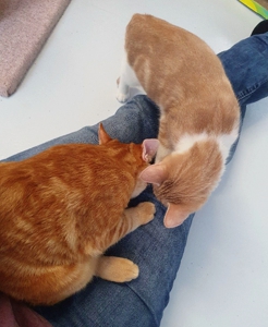 Voilà, Möhrchen und Findus sind gestern ausgezogen 😢. Sie durften zu ihrer Für-immer-Familie gehen und sie wohnen jetzt im Haus direkt nebenan. Das freut die Pflegefamilie natürlich! Jetzt sind wir 2 noch hier und geniessen die ganze Aufmerksamkeit für uns. Es ist schon anders, weil die neue Familie von Möhrchen und Findus uns seit Wochen jeweils mehrmals am Tag besucht hat 😊. So hatten wir viel Abwechslung.