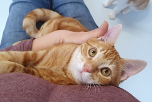 Karenji ist einfach kleiner und zierlicher. Sonst sind wir beide top gesund. Karenji wollte aber überhaupt nicht gehalten werden vom Praxispersonal. Sie hat so was von dumm getan… 😬 schliesslich hat unsere Nathalie sie auf den Arm genommen, da war die Welt wieder in Ordnung. Sie kratzen wir auf gar keinen Fall. Ich war viel lieber 😇. Habe mich von einer Paste zum Lecken ablenken lassen.