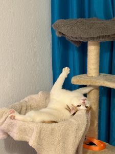 Mir und Mato gehts gut. Es ist uns pudelwohl 🐩. Mein Bruder spielt sehr gerne. Vor Weihnachten gab es ein Tunnel mit zwei Löchern und seit dem spielt Mato sehr gerne – das heisst, die Angestellten müssen mit der Maus an der Angel mitspielen. Manchmal lass ich mich auch verführen zu einem Spiel mit der Maus oder ich finde selber am Boden etwas zum Spielen was gerade herumliegt.