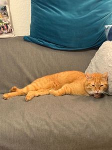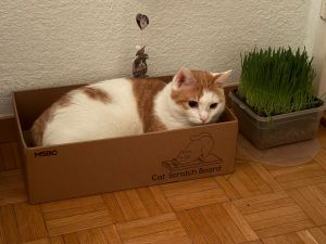 Zur Freude unserer Angestellten werde ich immer schmusiger, ich lass mich immer mehr am Kopf „chräbälä“ und drücke meinen Kopf gegen ihre Hände. Letzthin hat die Angestellte Mato im Wohnzimmer am Kopf gekrault, plötzlich stand ich da hab meinen Kopf kurz an ihre Hand gedrückt 😻 und meinen Kopf kurz kraulen lassen, aber dann verschwand ich blitzschnell wieder, man soll ja nichts übertreiben! Aber den Angestellten konnte ich damit eine Freude machen 🥰.