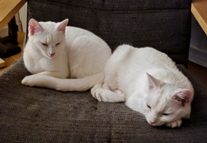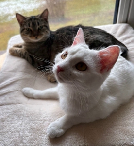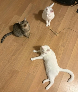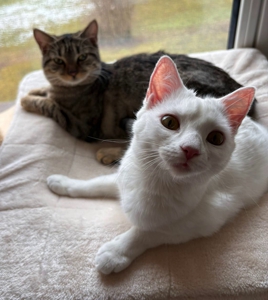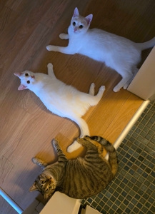 Wenn ihr also ein Herz ❤️ für eine kleine, sehr soziale Katzen-Gang habt und euch vorstellen könnt, dass euer Leben ab jetzt aus Kuscheln und einem Fisch besteht, der ständig durch die Wohnung getragen wird, dann meldet euch. Ihr werdet es nicht bereuen. Zusammen sind sie das perfekte “Wir machen dein Zuhause lebendig”-Paket 😎.