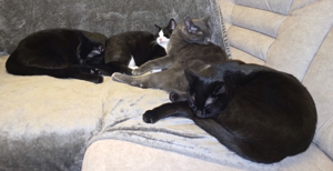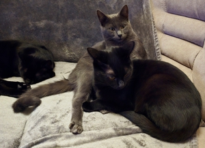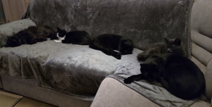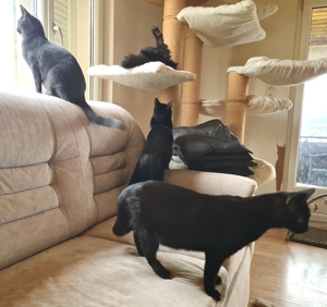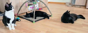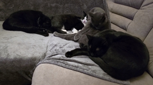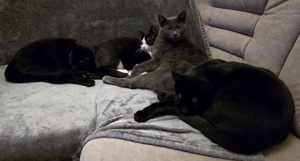Die vier Warriors waren total verunsichert, als am Morgen plötzlich ein Fremder im Wohnzimmer stand. Zur Verwunderung des Pflegemamis versteckten sich alle vier so gut sie konnten. Als einziges Hilfsmittel blieben die Angeln und natürlich konnte als erstes unser Lämpli nicht widerstehen 😁. Auch Turbo traute sich nach einiger Zeit mitzuspielen. Nur Crash und Thorin war die Sache gar nicht geheuer 😕. Doch dann tauchten weitere Fremde auf und die Sache war klar: Sowohl Crash (neu Blue) und Turbo (neu Blacky), wie auch Lämpli (neu Hedwig) und Thorin (neu Sirius) haben ihre neuen Menschen begeistert und durften ausziehen. Nun ist es ganz still geworden im Wohnzimmer des Pflegemamis. Aber natürlich freut sie sich sehr für die vier, denn sie haben es verdient, endlich im neuen Für-immer-Zuhause anzukommen, mehr Platz und viele Schmuseeinheiten zu bekommen 😍. Auch die beiden Katzen vom Pflegemami freuen sich, dass sie endlich wieder das Wohnzimmer mitbenützen dürfen. Das Pflegemami und Kathrin wünschen den vier super-tollen Katzen ein wunderbares neues Leben ❤️, auch wenn sie sie sehr vermissen werden.