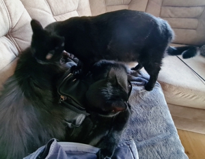 Obwohl Kathrin lange nicht mehr da war, haben wir sie natürlich sofort wiedererkannt und sie wie immer gleich gestürmt 💕. Wir haben mit ihr geschmust und sie hat mit uns mit zwei Angeln gleichzeitig gespielt, damit das Pflegemami ein bisschen putzen konnte. Ohne Ablenkung wäre das für sie eine schwierige Sache geworden, aber so haben wir uns natürlich auf die Angeln konzentriert. Wie immer hat es einige Zeit gedauert, bis wir auch nur ein bisschen müde geworden sind. Aber schlussendlich kamen wir etwas zur Ruhe und genossen nochmals die Nähe der Menschen. Sie sprachen immer wieder davon, dass morgen ein grosser Tag für uns sei, aber natürlich hatten wir keine Ahnung, was da auf uns zukommen würde 🙀.