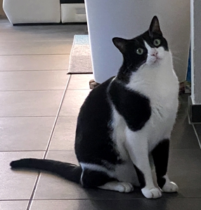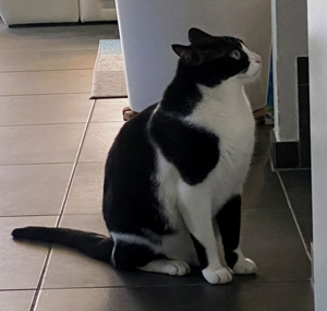 Baggi hat eine richtige Morgenrutine. Sobald die Besitzerin aufsteht, will er zu fressen, dann gibt’s ein “Schlecki” (Liquid Stick) 😋, danach muss die Balkontüre aufgehen und Baggi flitzt raus und beobachtet die Vögel ganz genau. Baggi ärgert auch gerne die Hunde der Nachbarin, er sitzt dafür in der äussersten Ecke des Balkons, damit ihn die Hunde sehen und einer davon verzweifelt manchmal schier, weil er einfach nicht an die Katze rankommt 😉. Das findet Baggi wohl besonders amüsant 🤣.
