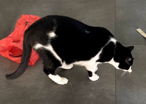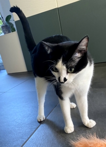 Natürlich ging es nicht lange und auch Baggi wollte wissen, was hier passiert. Ein Abenteuer lässt er sich nicht entgehen und spielen steht wohl an erster Stelle. Ganz anders zum kräftig gebauten Bob, ist Baggi sehr zierlich, fast schon etwas klein im Vergleich, dafür flink wie ein Wiesel 😂. Mit seinem lustigen Fleck auf der Nase ist er einfach zuckersüss! Baggi hat Power für zwei und auch wenn er schon lang ausser Atem ist, er würde weiterspielen. Baggi mag alle seine Familienmitglieder sehr 😻, er ist sehr aufgeschlossen und lässt sich von allen verwöhnen. Zu der jüngeren Tochter hat er jedoch ein besonderes Verhältnis. Sie ist die einzige, die ihn tragen darf wie ein Baby, auch kann sie ihn auf ihre Brust legen und zusammen kuscheln sie dann auf dem Sofa. Ist ihre Schlafzimmer Türe zu, kann es schon vorkommen, dass er daran kratzt bis geöffnet wird. Die beiden mögen einander wirklich sehr ❤️.