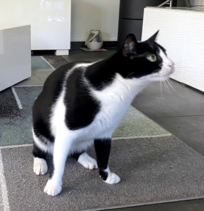 Baggi hat eine richtige Morgenrutine. Sobald die Besitzerin aufsteht, will er zu fressen, dann gibt’s ein “Schlecki” (Liquid Stick) 😋, danach muss die Balkontüre aufgehen und Baggi flitzt raus und beobachtet die Vögel ganz genau. Baggi ärgert auch gerne die Hunde der Nachbarin, er sitzt dafür in der äussersten Ecke des Balkons, damit ihn die Hunde sehen und einer davon verzweifelt manchmal schier, weil er einfach nicht an die Katze rankommt 😉. Das findet Baggi wohl besonders amüsant 🤣.
