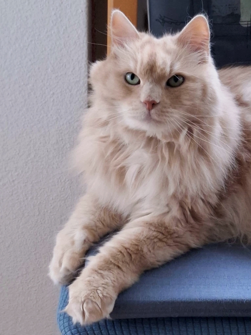 Baloo ist ein gesunder, eleganter und eher klein gezüchteter Rassekater. Sein Fell ist seidig weich, verknotet kaum und er lässt sich gerne bürsten, wenn er gerade in der Stimmung ist. Er kann mit einem “plaudern”, wenn er will und auch sehr anhänglich und kuschelig sein. Auch wenn er anfangs vielleicht eher etwas misstrauisch und beobachtend sein wird, ist er ein sehr selbstbewusster Kater, der gerne seine Dominanz zeigt. Er kann aber auch sehr zutraulich werden und ist ein angenehmer Fernsehpartner am Abend auf dem Sofa.
