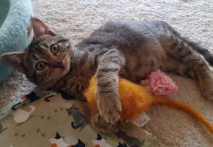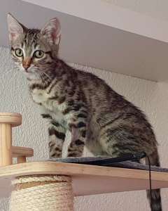 Nisha ist eine zuckersüsse Lady. Sie mag es sehr geknuddelt und gekrault zu werden. Sie liebt es auf jeden Kratzbaum zu klettern und geniesst so den Überblick. Auch jagt sie gerne ihr Spielzeug , schleppt es umher oder klaut Suri die Bällchen. Nisha würde gerne mit ihrer Schwester Sayuri ins neue Zuhause umziehen und wenn Suri auch dabei wäre, wäre das wunderbar.