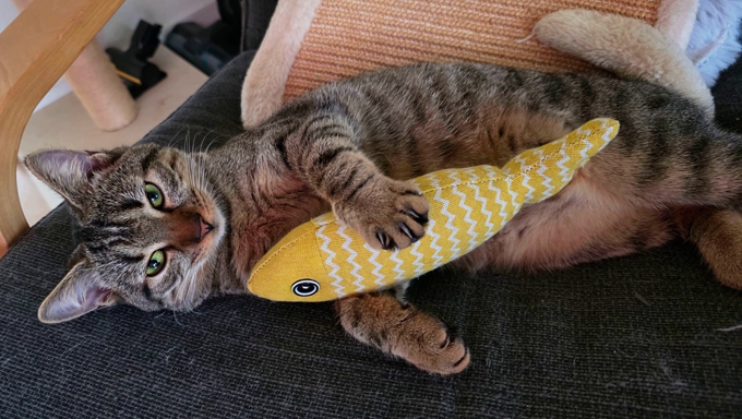 Yoda ist noch sehr schüchtern dem Menschen gegenüber. Auch wenn er noch kein Schmusebüsi ist, lässt er sich kurz streicheln, wenn er irgendwo schläft und scheint es zu geniessen. Er liebt alle möglichen Spielbälle und natürlich seine beiden Brüder zum Rumtoben. Wie seine Brüder braucht er Menschen, die ihm die notwendige Zeit und Geduld geben, damit er in seinem eigenen Tempo ankommen darf und um sein Vertrauen weiter aufzubauen. Da er sich super mit Aslan und Eliot versteht, wäre es schön, wenn er zumindest mit einem von ihnen zusammenbleiben dürfte.