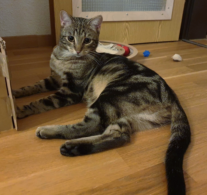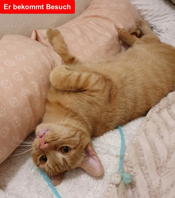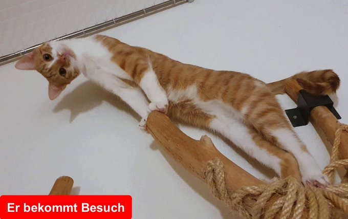 Keano ist noch immer sehr neugierig und stets für Neues zu haben. Er spielt sehr gerne mit den Spielangeln und rast wie ein Wirbelwind durchs Zimmer. Er liebt das Fummelbrett und angelt dort geduldig seine Leckerli. Auch das Schmusen hat er inzwischen entdeckt und geniesst es sehr. Keano braucht im neuen Zuhause aber dennoch viel Zeit und Aufmerksamkeit, um das Vertrauen weiter aufzubauen und ankommen zu können. Keano will gerne zusammen mit seinem Kumpel Aslan in ein neues Zuhause ziehen.